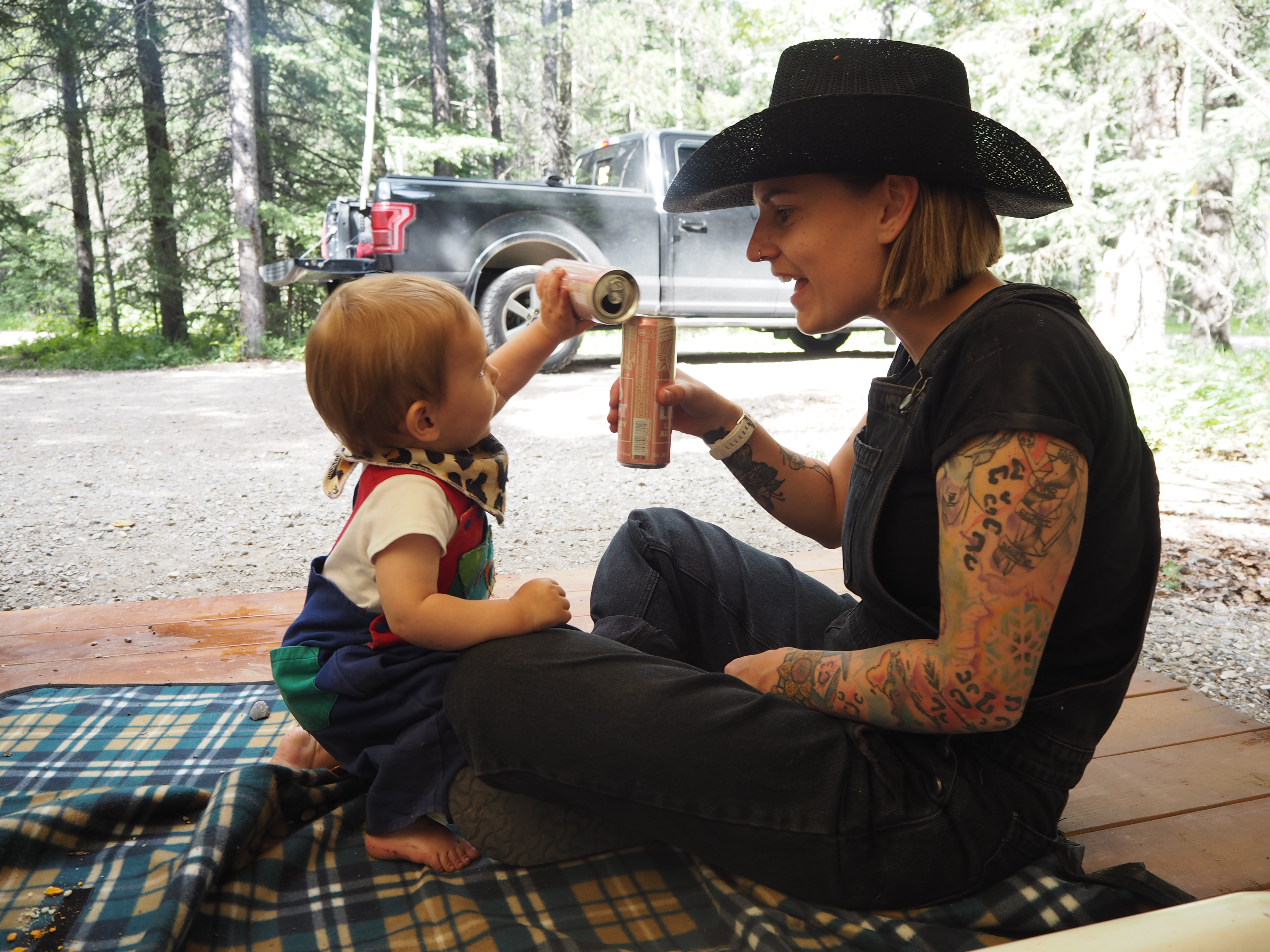 The next morning was Rockets 1st birthday. Henry got up and lit the firepit and cooked us up bacon and eggs. I decorated the campsite and we had a little cowboy themed party. Just the three of us. We pumped out some ACDC (Rockets favourite) and opened a couple of little presents and then went for a walk in the woods. It was perfect.