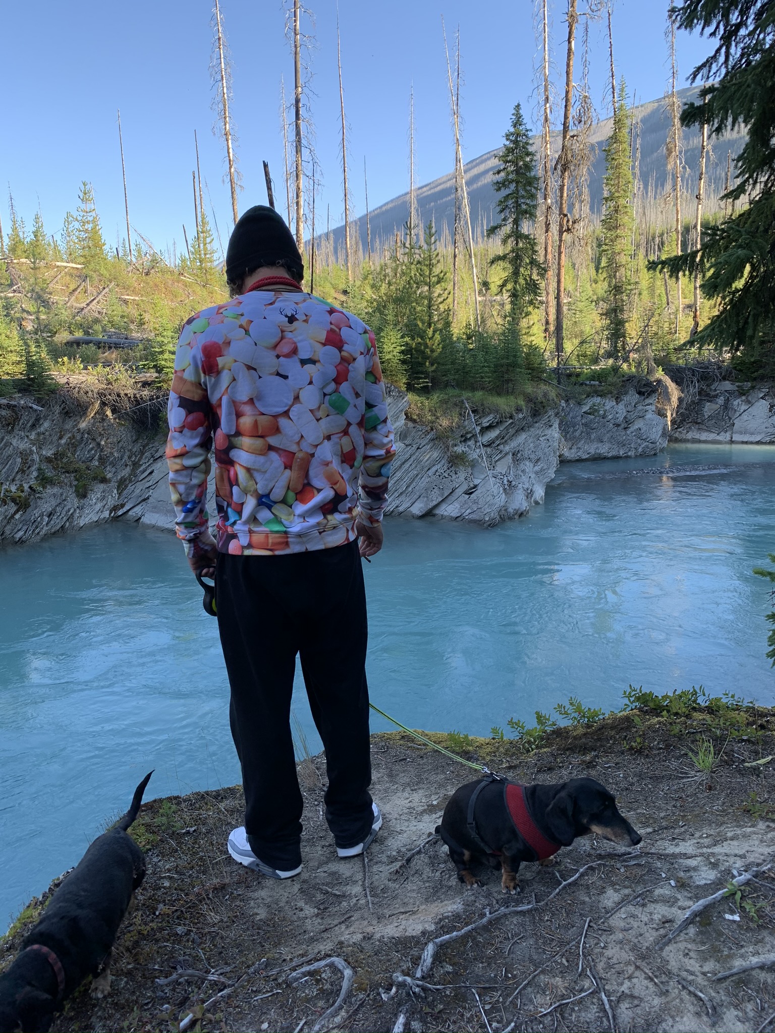 The 6 of us (Henry, Me, Rocket and the sausage crew) booked to stay in a cabin for one night for mine and Henry’s 5th wedding anniversary. The lodges are located at vermillion crossing on highway 93. It’s about an hour and 45 minutes from Canmore on the way to Invermere.