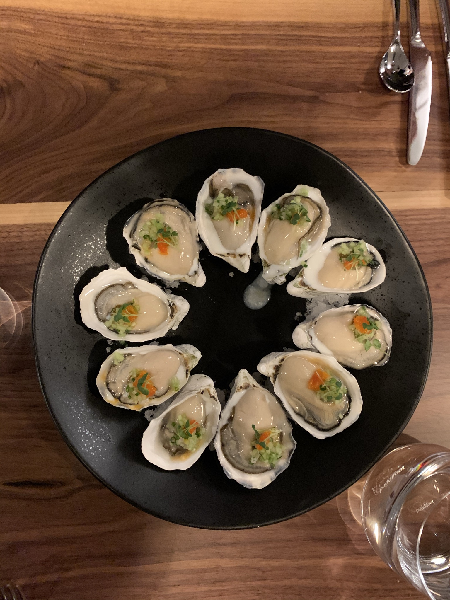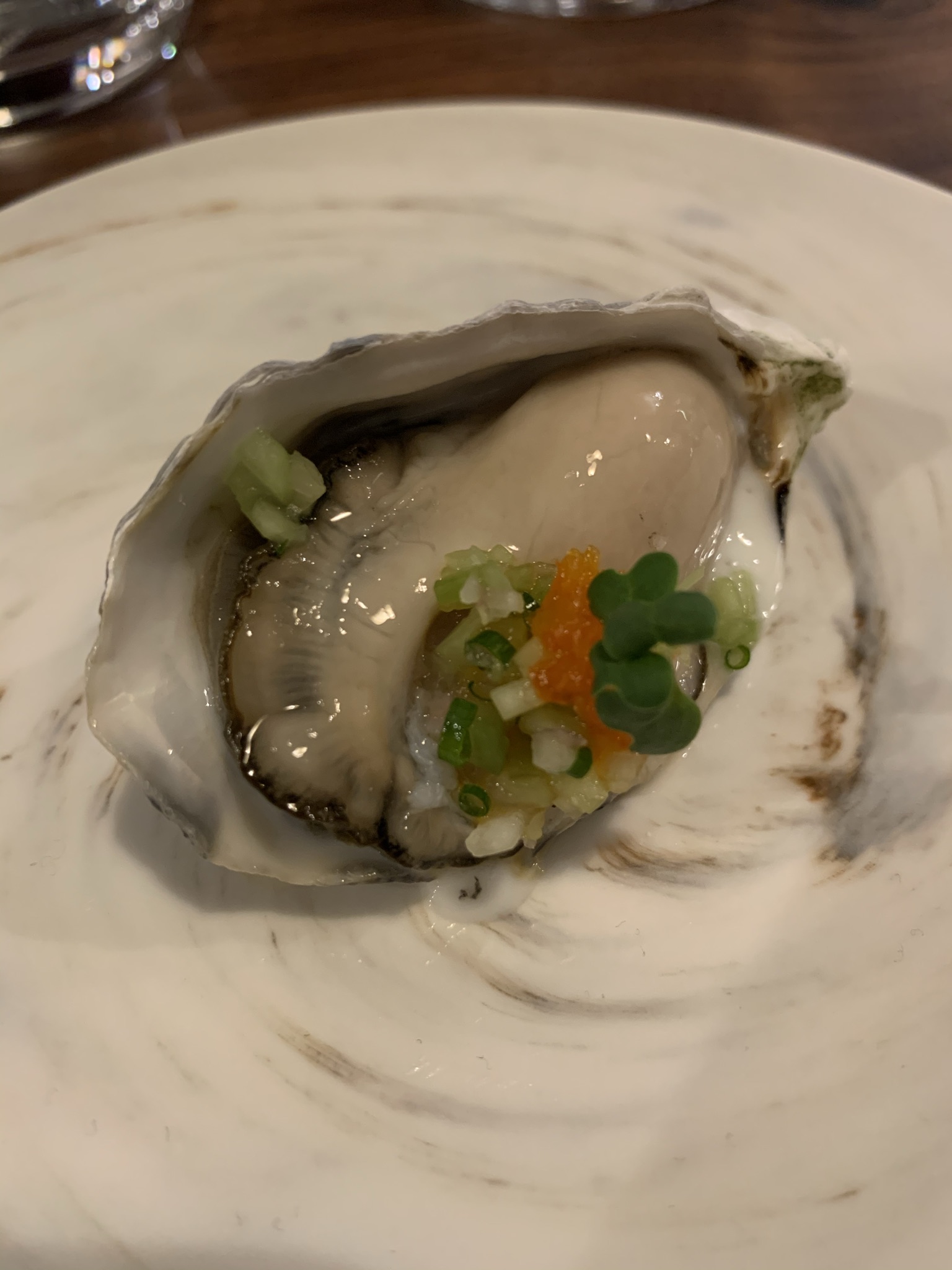 Dany – the head chef came to our table and told us about these delicious Oysters he had in. Now Alberta is totally land locked and pretty damn far from the sea but these Oysters were STUNNING. From Vancouver, and so fresh! They were topped with a little pickle and spice which complemented the flavour with out over powering it. So delicious and a real treat. We had two each!