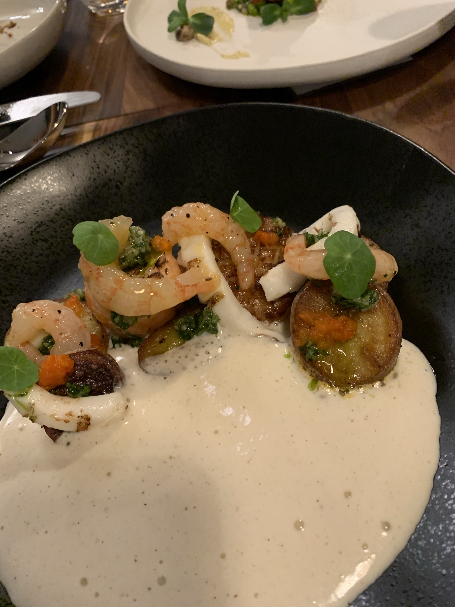 The chef of this restaurant knows one of our “supper club” group really well so we have all been dying to try it out. He has struggled to get it up and running because of the lock downs so we were delighted to be able to support him as restaurants open back up.