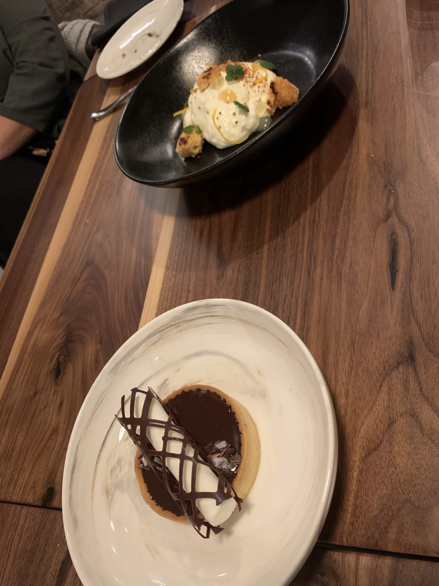 Dessert was a honey whisky toddy – warm ginger and whisky mouse with some honey cake. Very light and tasty, although for me I can’t really get excited about too creamy a dessert. The Chocolate tart wasdelicious! I am a big chocolate fan and deeply begrudged sharing this with the girls. 😊 Beautifully presented, you can’t go wrong with chocolate!