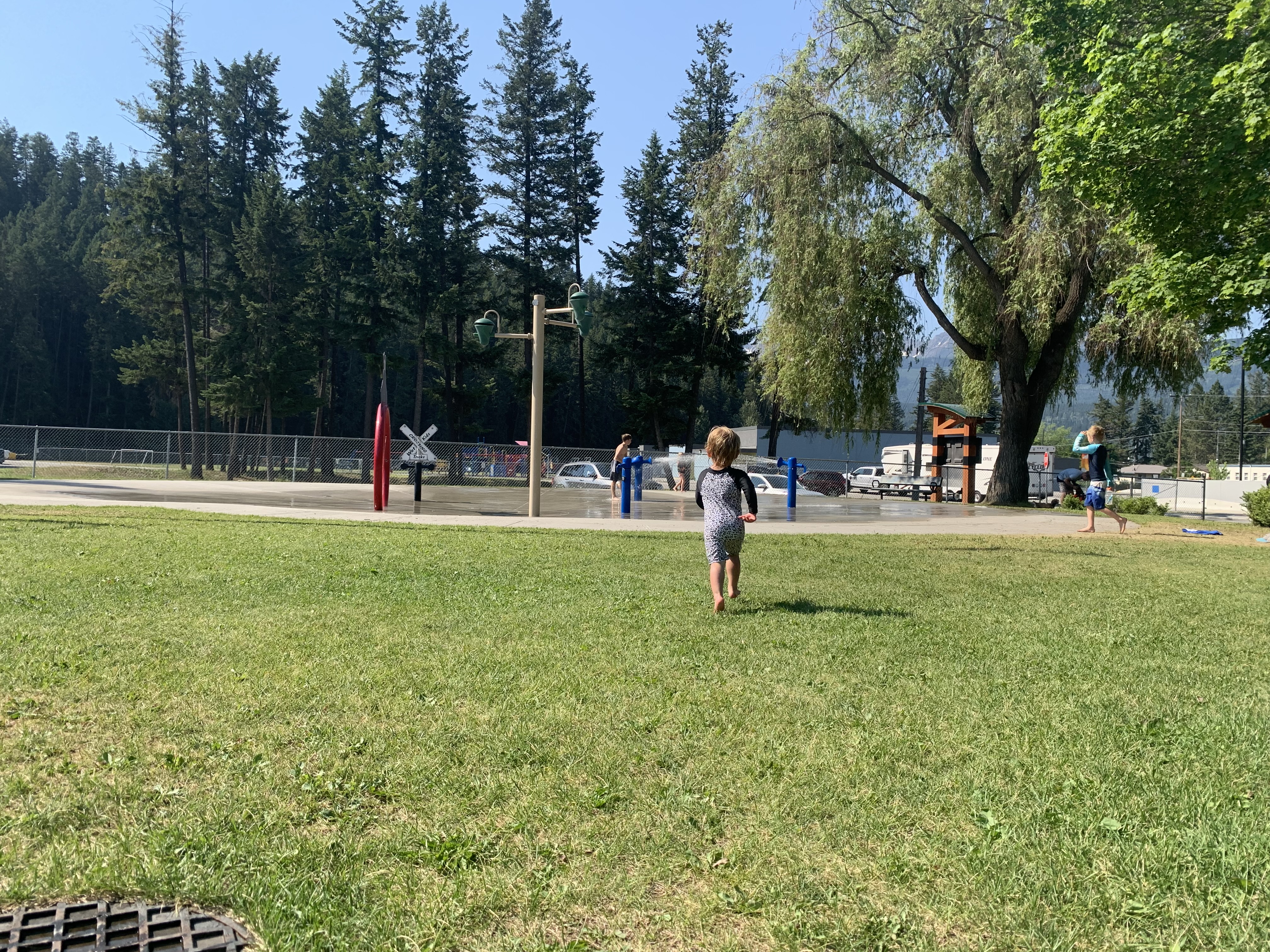 In the middle of a massive heat wave this is what we all needed. It’s a big park near the municipal campground (probably a better spot then the Ranch Campground) loads of space and grass around the edge for you to have a picnic blanket. It’s fenced off so the kids can just go for it and you know they can’t go anywhere.