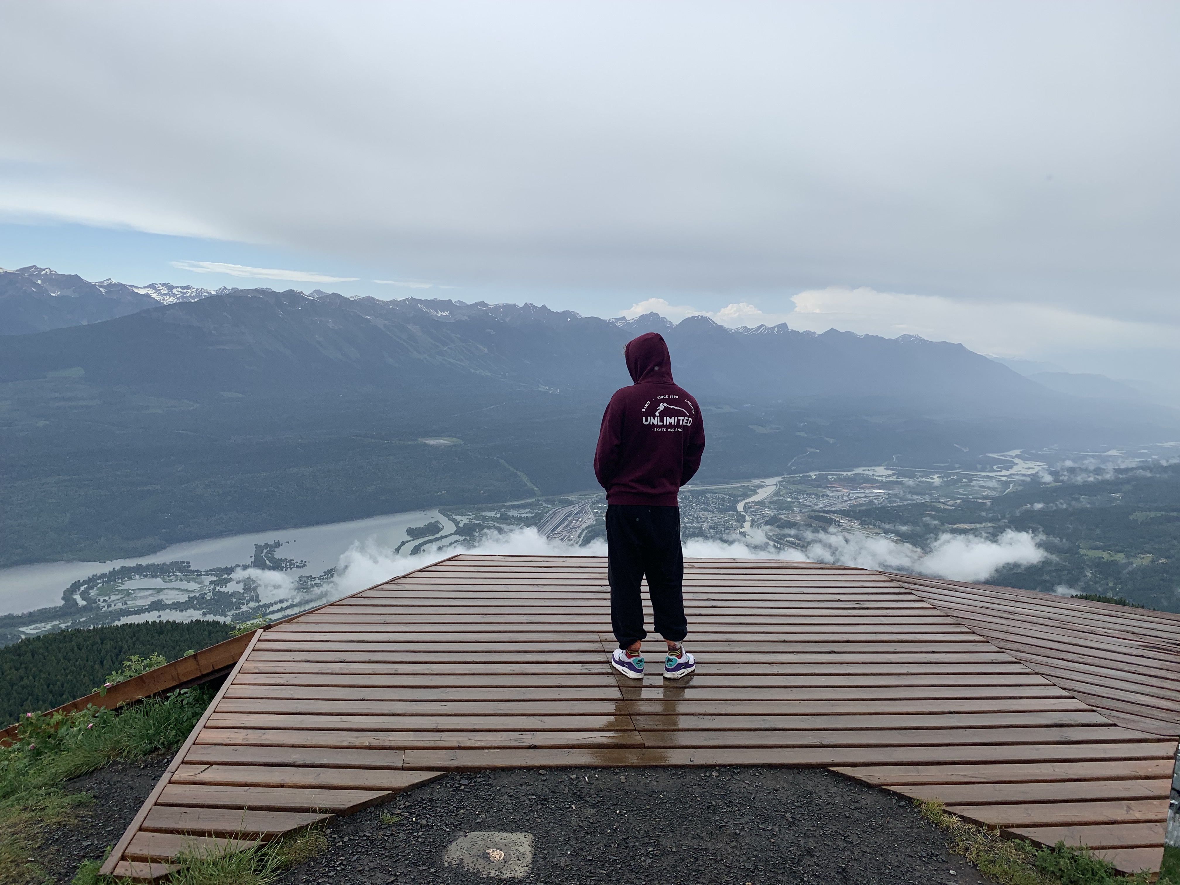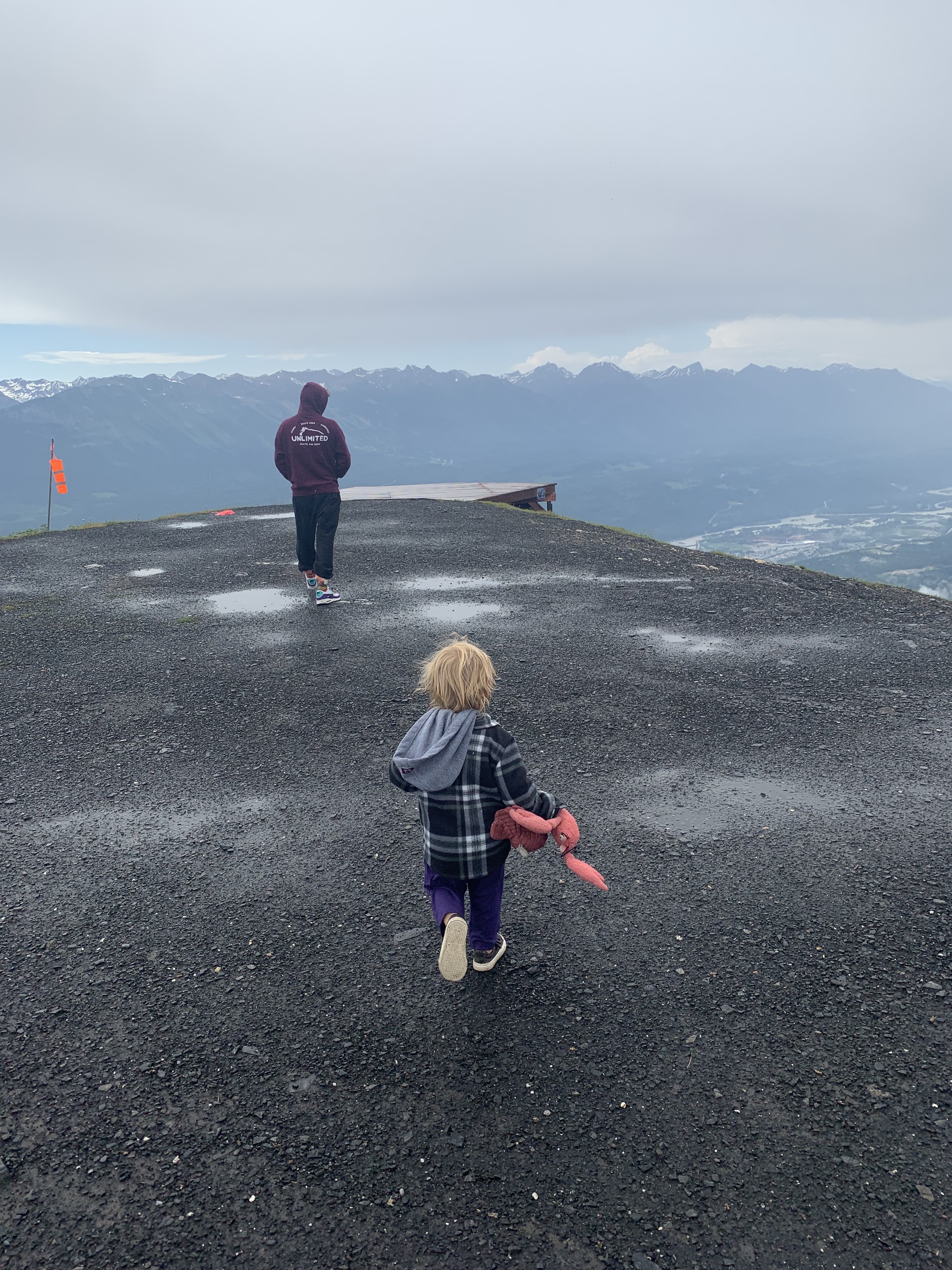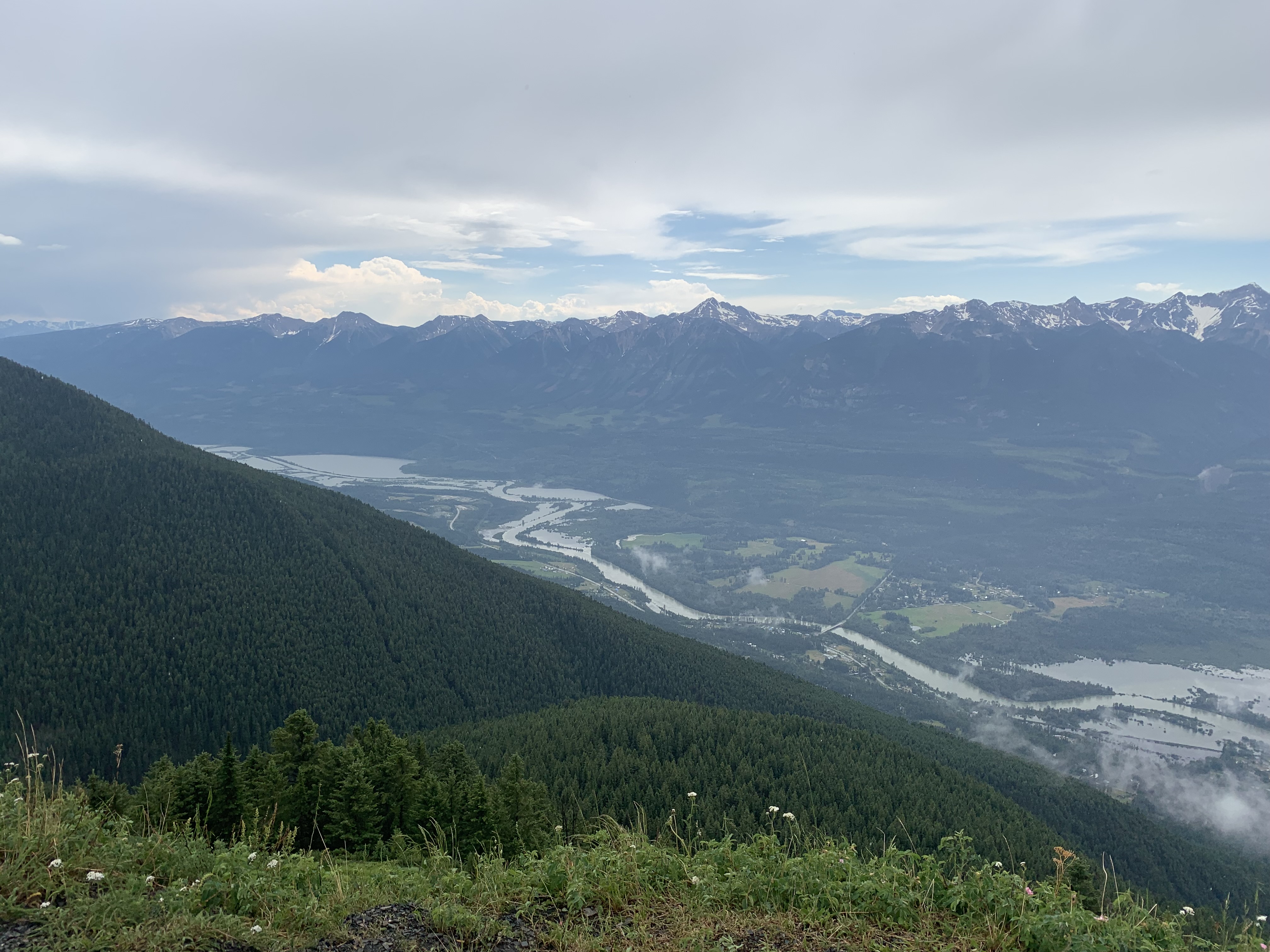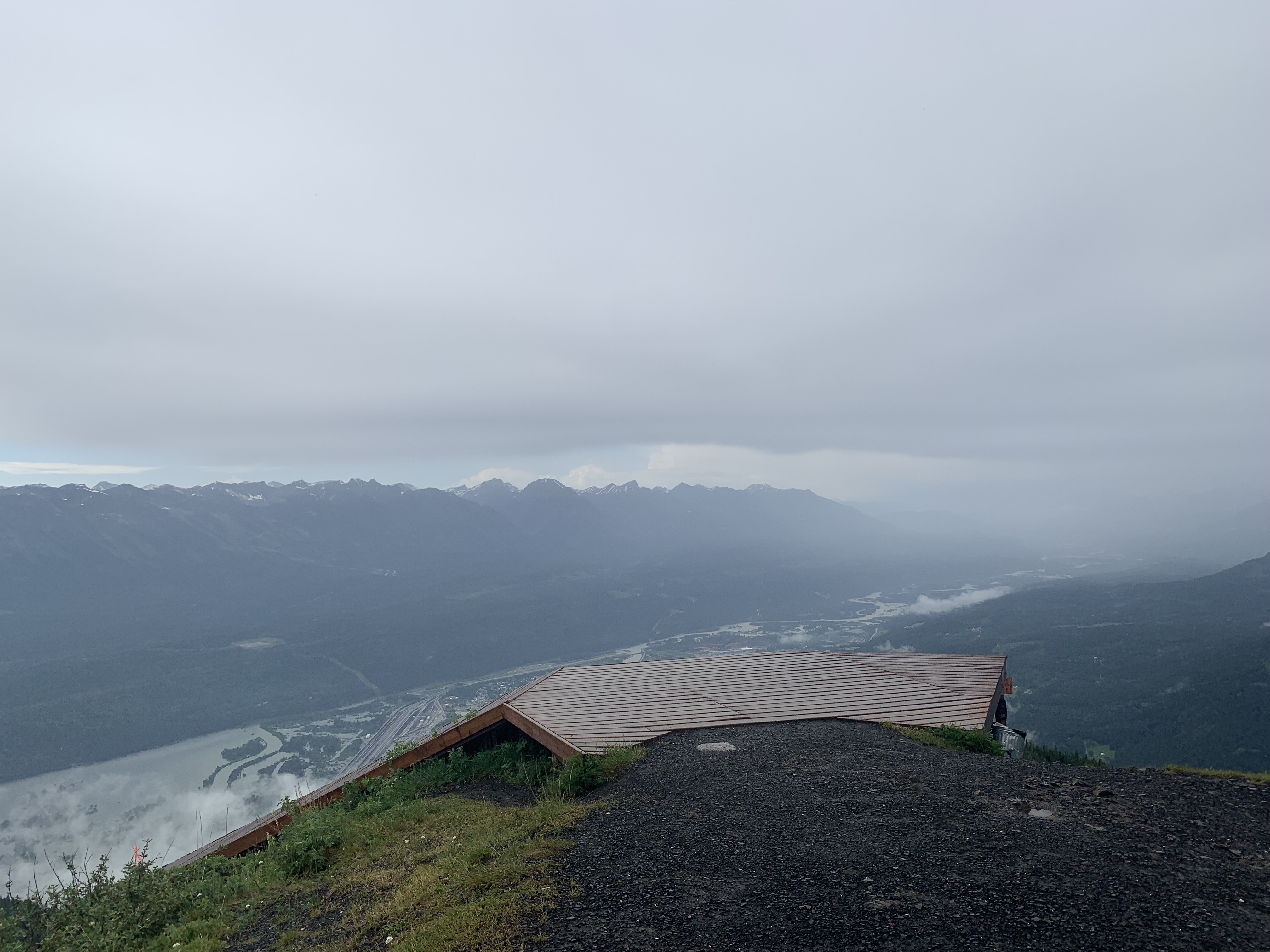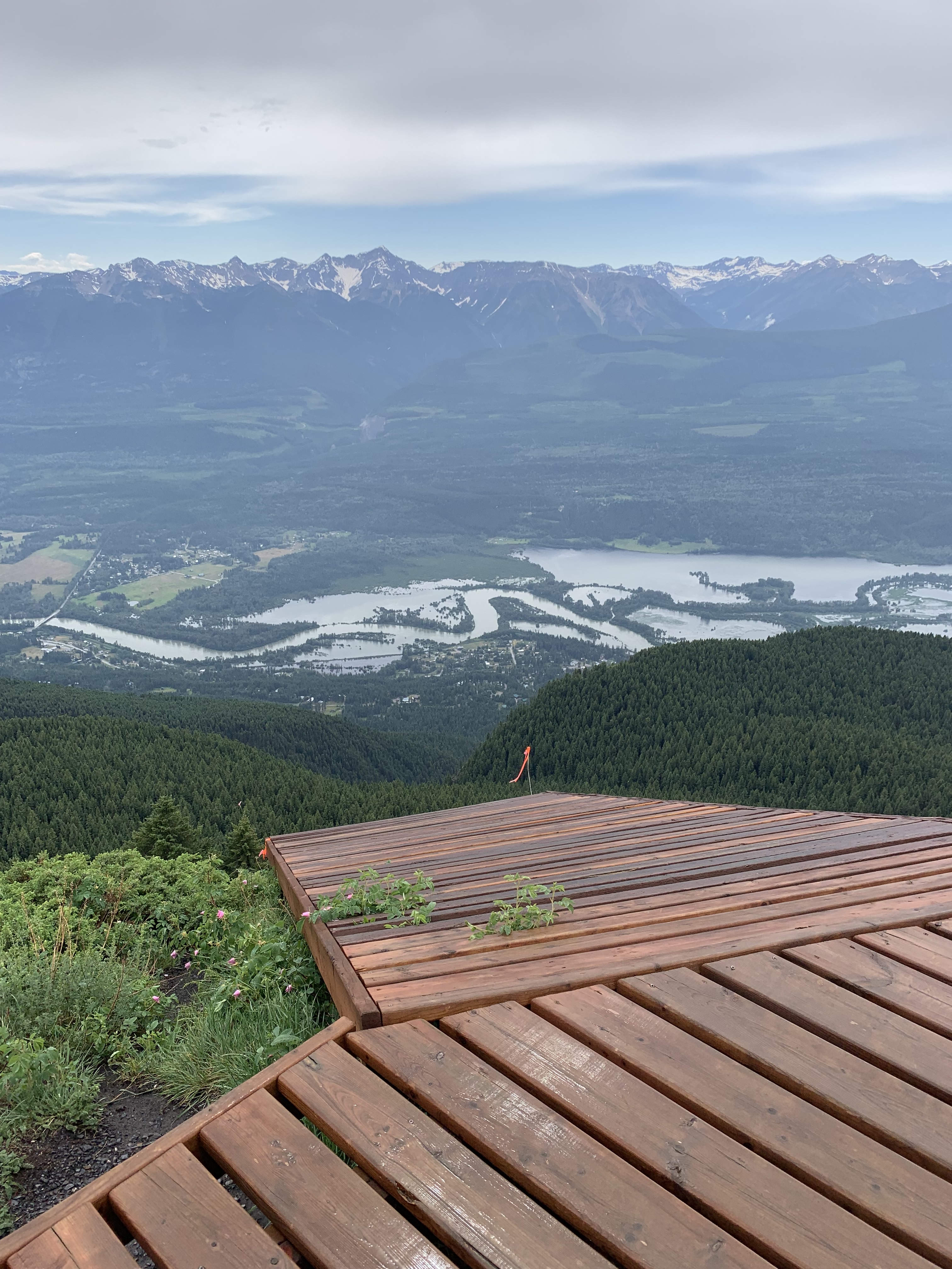 When you arrive at the top of the peak there is a pretty impressive launch pad build for wing suit jumpers, paragliders and any other nutter who wants to throw themselves off the top of a mountain. You have an amazing view of the whole of the Columbia valley and the town of Golden, and the Purcell mountains.