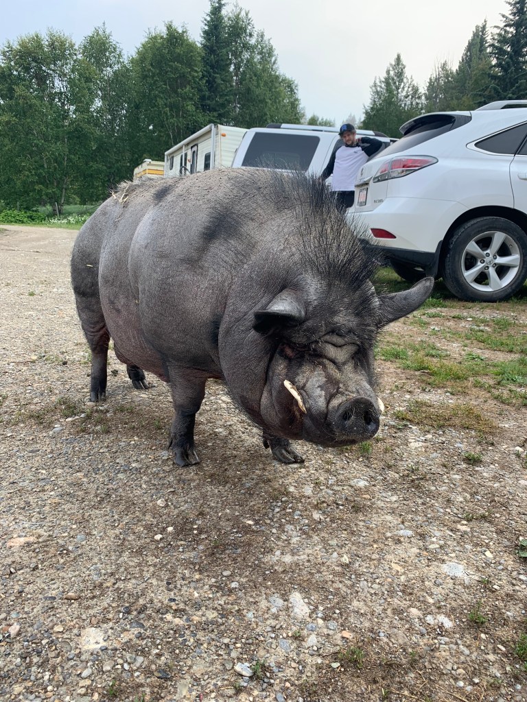 Hidden up in the hills in a great remote little spot is Bear Corner Ranch. Pulling in you will see all the horses living their best life in all that open space. And we were greeted by the stunning Merlin. A huge big pig who apparently was a house pig!